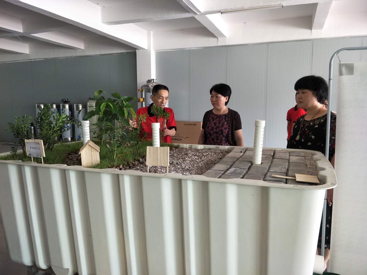公司總經理向羅部長一行介紹新一代呼吸型人工濕地